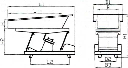 注:給料機(jī)槽體外形及尺寸可根據(jù)具體工藝要求非標(biāo)設(shè)計制作成封閉型或其它形式,中間加層篩網(wǎng)則可改為小型振動篩。